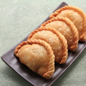 A mixer of cabbage, onions, mixed peppers and carrots stuffed in a golden flaky crust fried or backed to perfection serve with your choice of sauce.